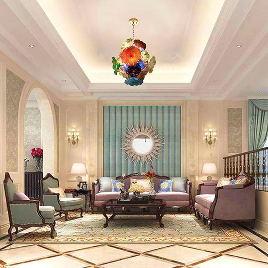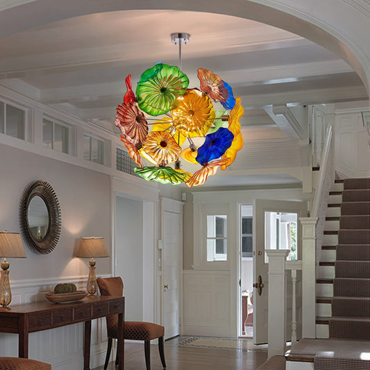 Ceiling Bloom Blown Glass Plates Chandelier Multi Colors Flowers