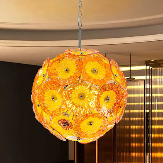Ceiling In Blooms Blown Glass Plates Chandelier Yellow And Orange