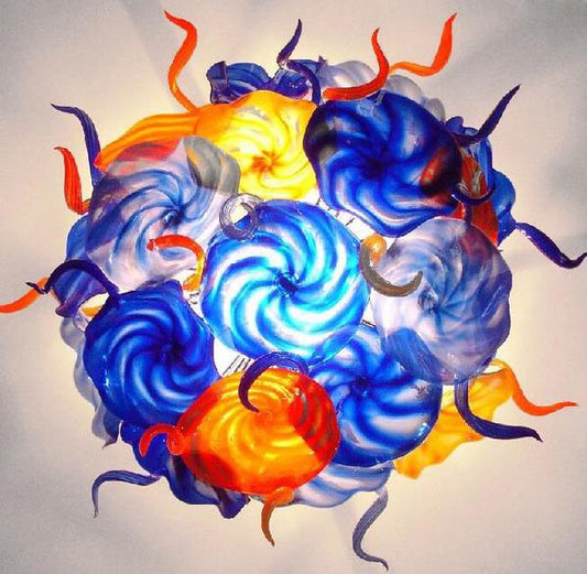 Ceiling In Blooms Blown Glass Plates Chandelier Multi-Colors