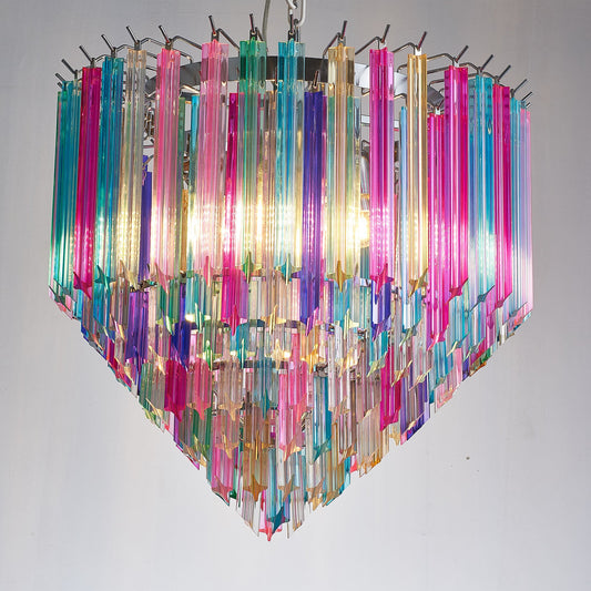 Mid Century Multi-colors Rainbow Glass Prisms Towered Chandelier