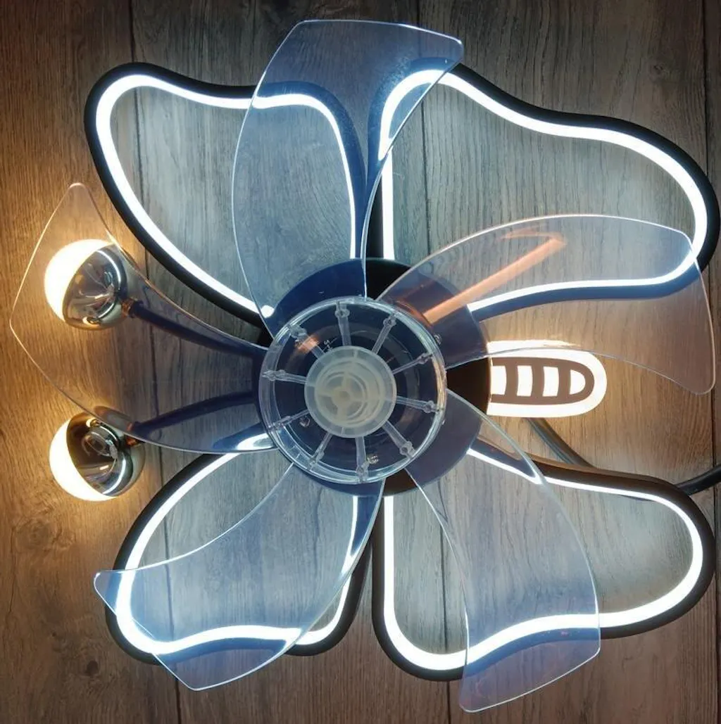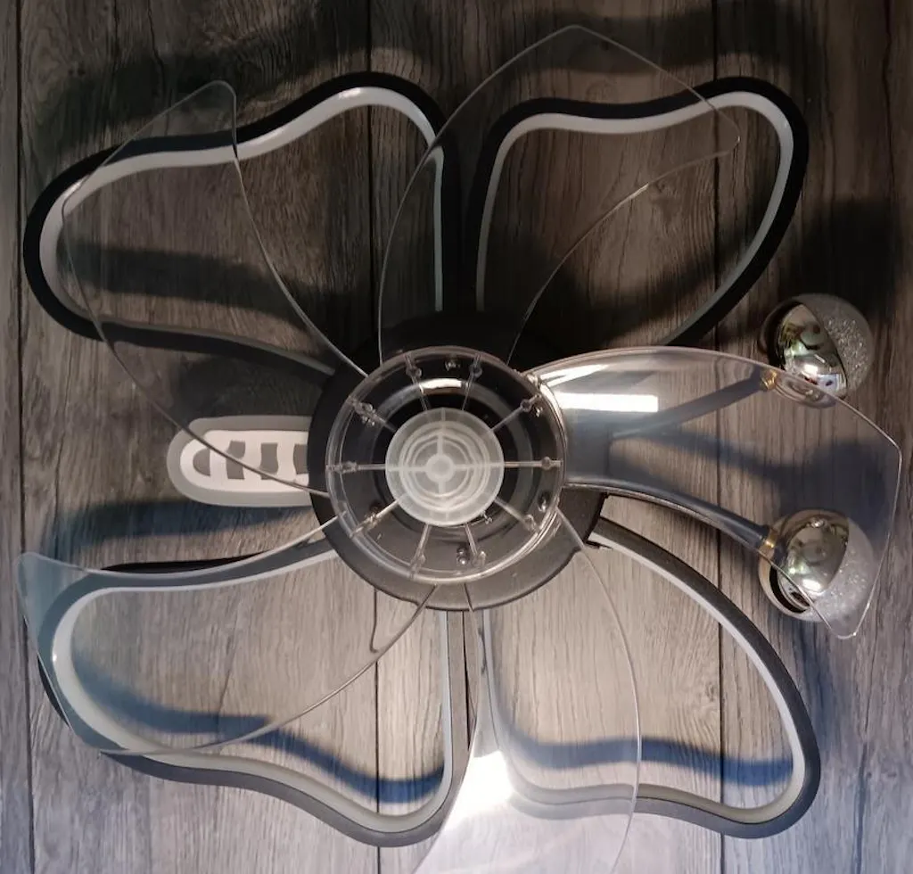 Its low-profile silhouette sits close to the ceiling, making it especially well suited for bedrooms, smaller living areas, home offices, and rooms where a standard ceiling fan would feel visually heavy. The black finish keeps the look modern and versatile, while the transparent blades help the fixture feel lighter and more refined.