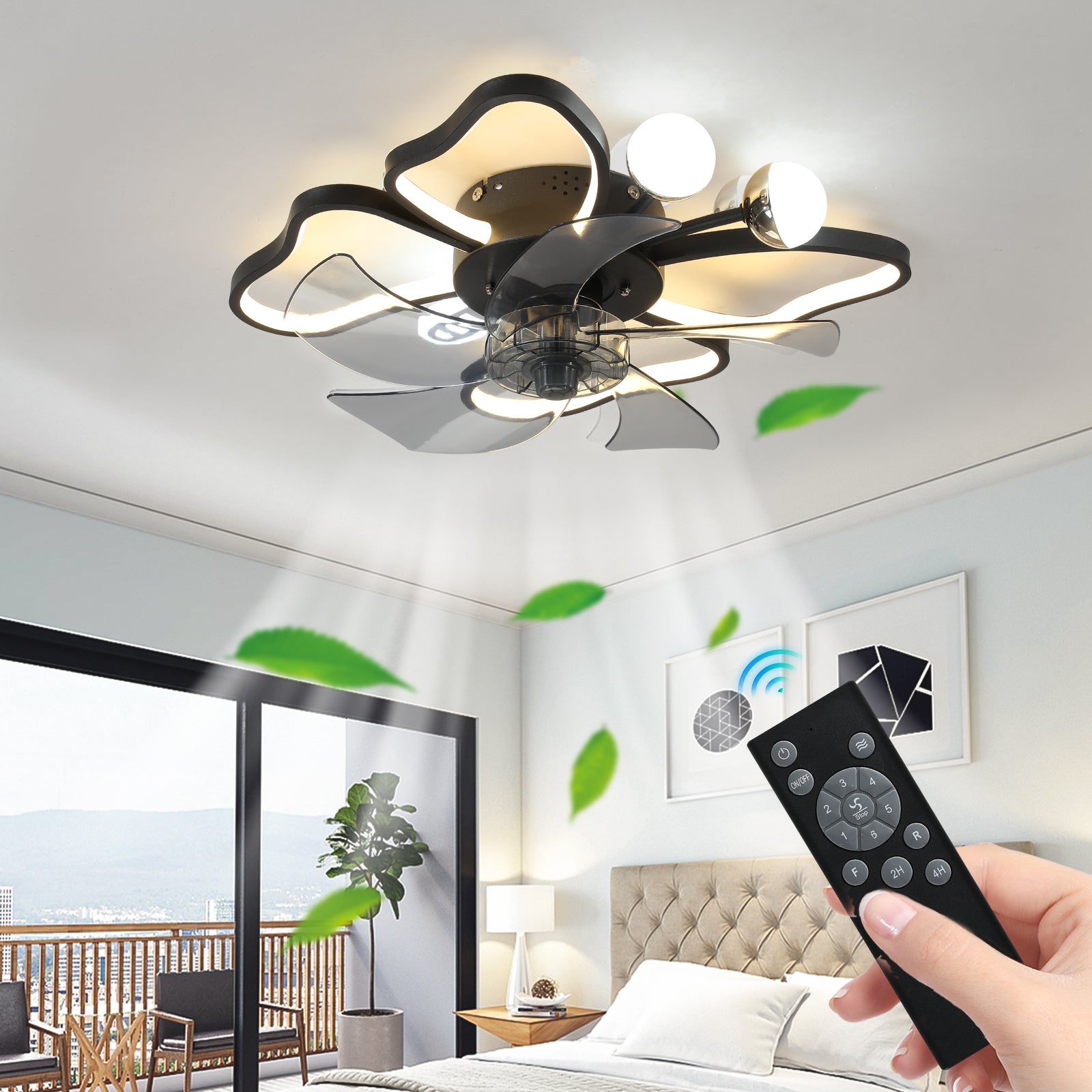Modern Black Flush Mount Ceiling Fan with Light & Remote