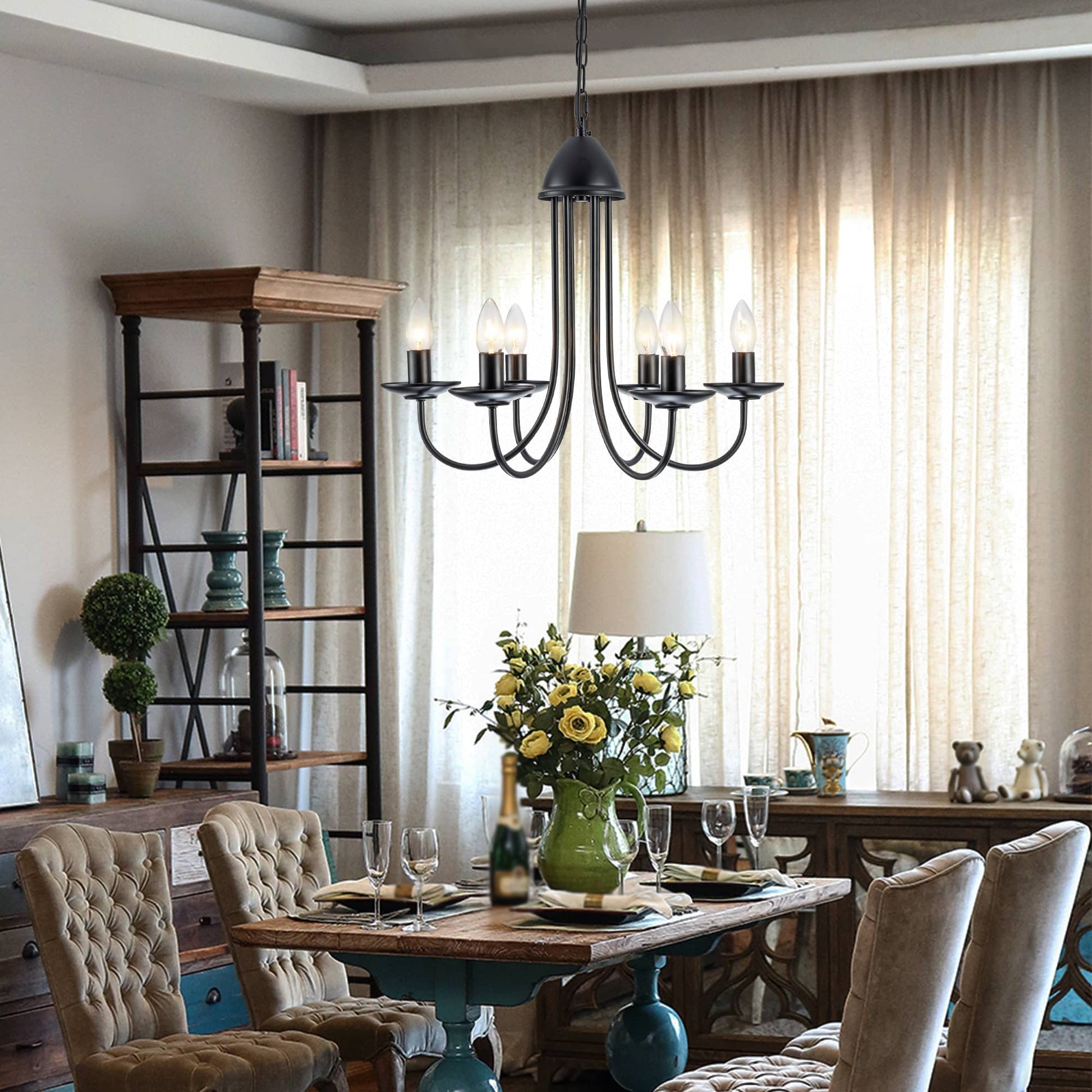 Timeless farmhouse character, refined with clean lines. This chandelier pairs a classic candelabra silhouette with a streamlined black iron frame and a bell-shaped canopy for a look that feels both traditional and current. The adjustable chain lets you dial in the perfect hanging height, while the candle-style layout brings warm, welcoming ambiance—ideal for spaces that want simplicity with presence.
