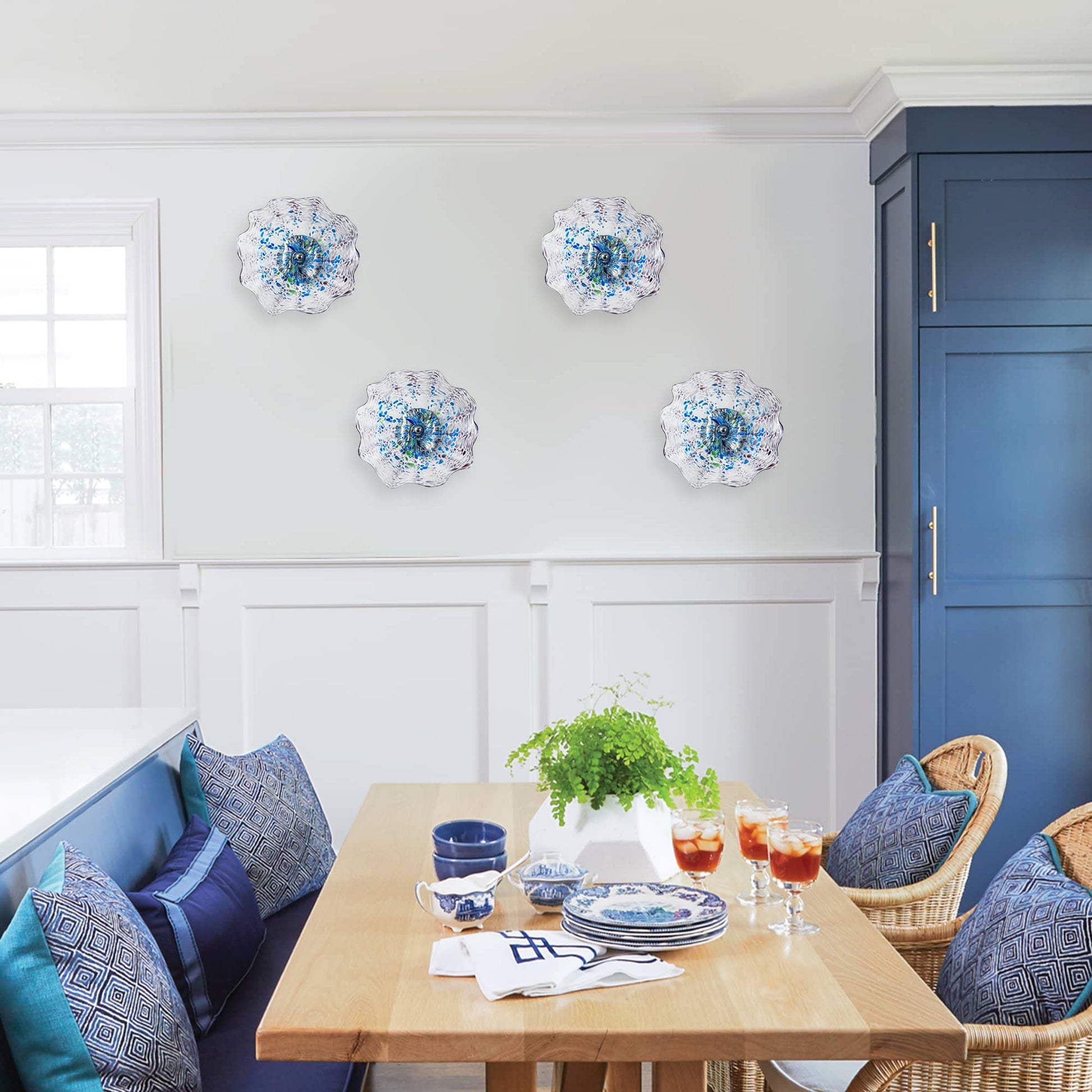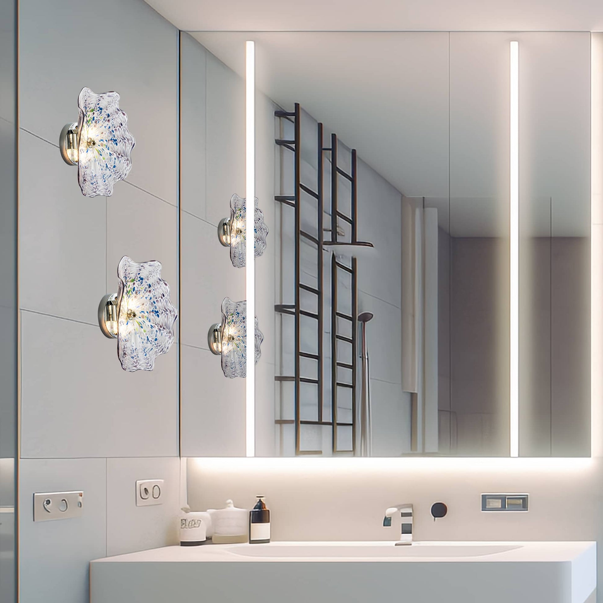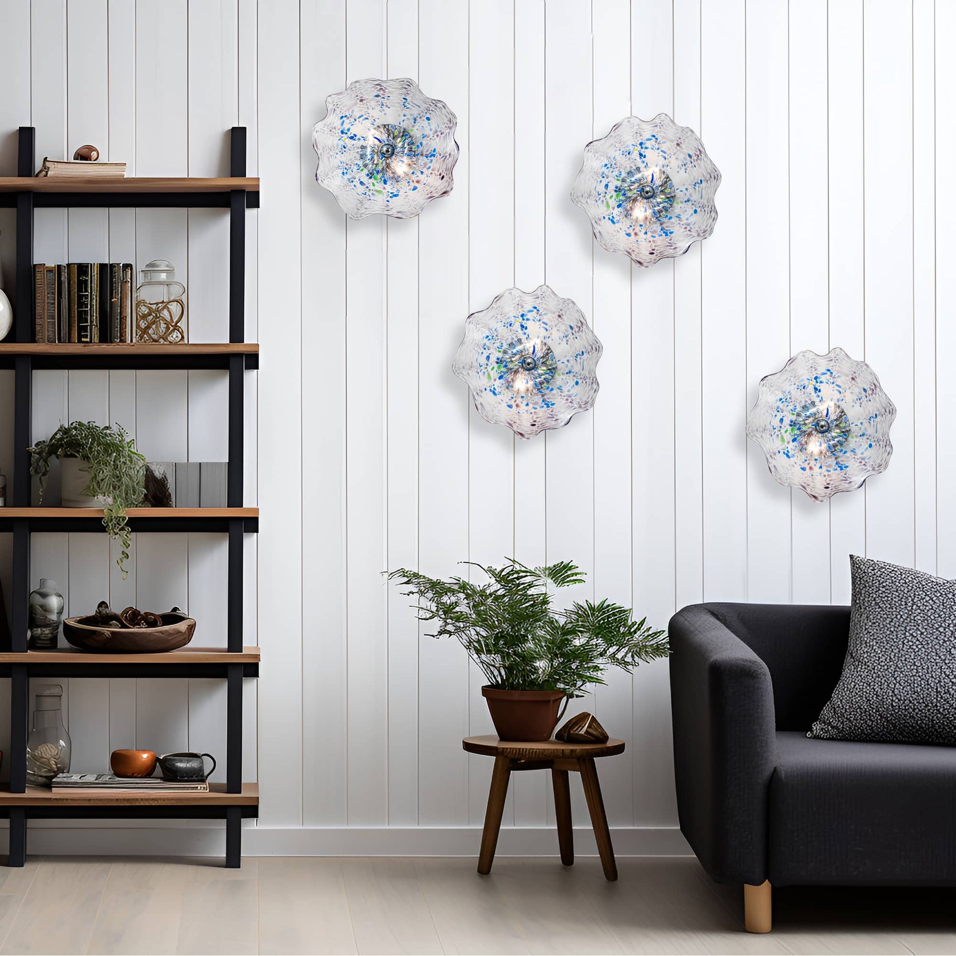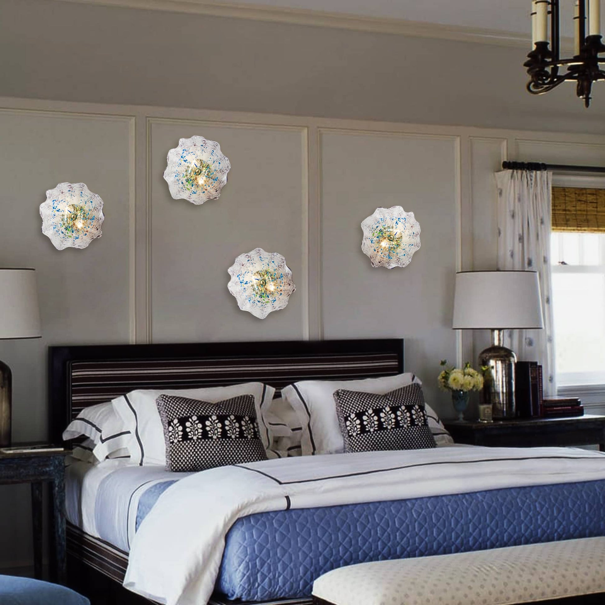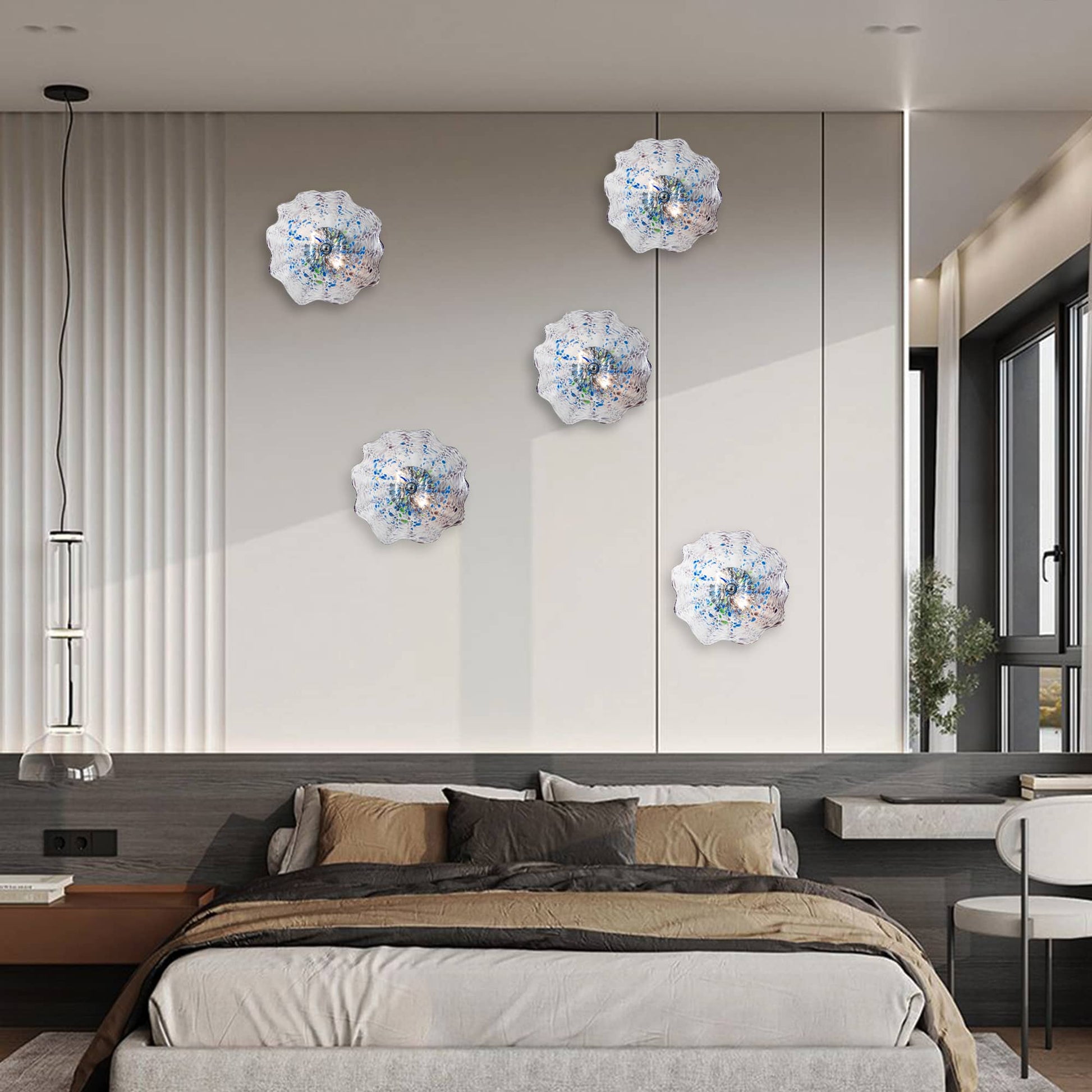 Many of our modern and bubble glass chandeliers are dimmable when used with dimmable bulbs and a compatible wall dimmer. If you need help choosing bulbs or a dimmer, contact us before installation and we’ll guide you.